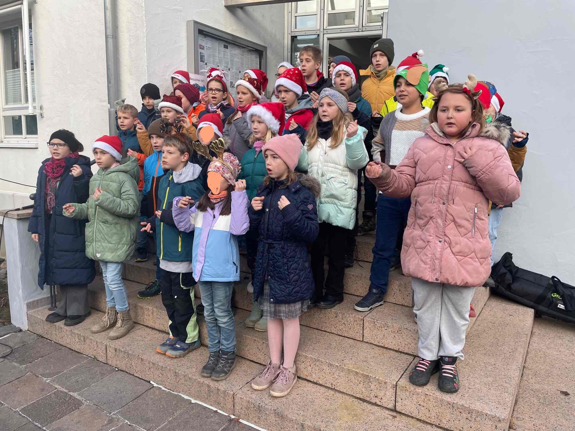 Viele Kinder der Klassen 3b und 4a haben sich zum Projektchor zusammengefunden und auf dem Marktplatz gesungen. Das war eine ganz besonders schöne Stimmung.